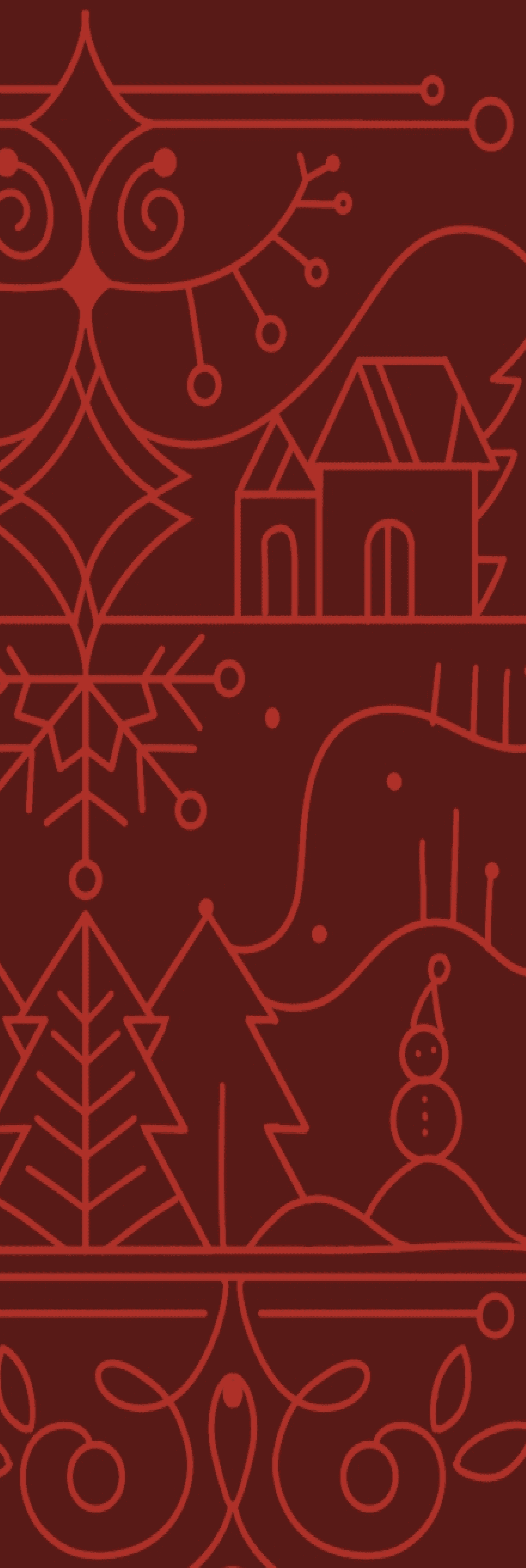 The exterior of the box features simple line illustrations connected to traditional Christmas elements, complemented by a background color that mirrors the flavor profile of the wine.